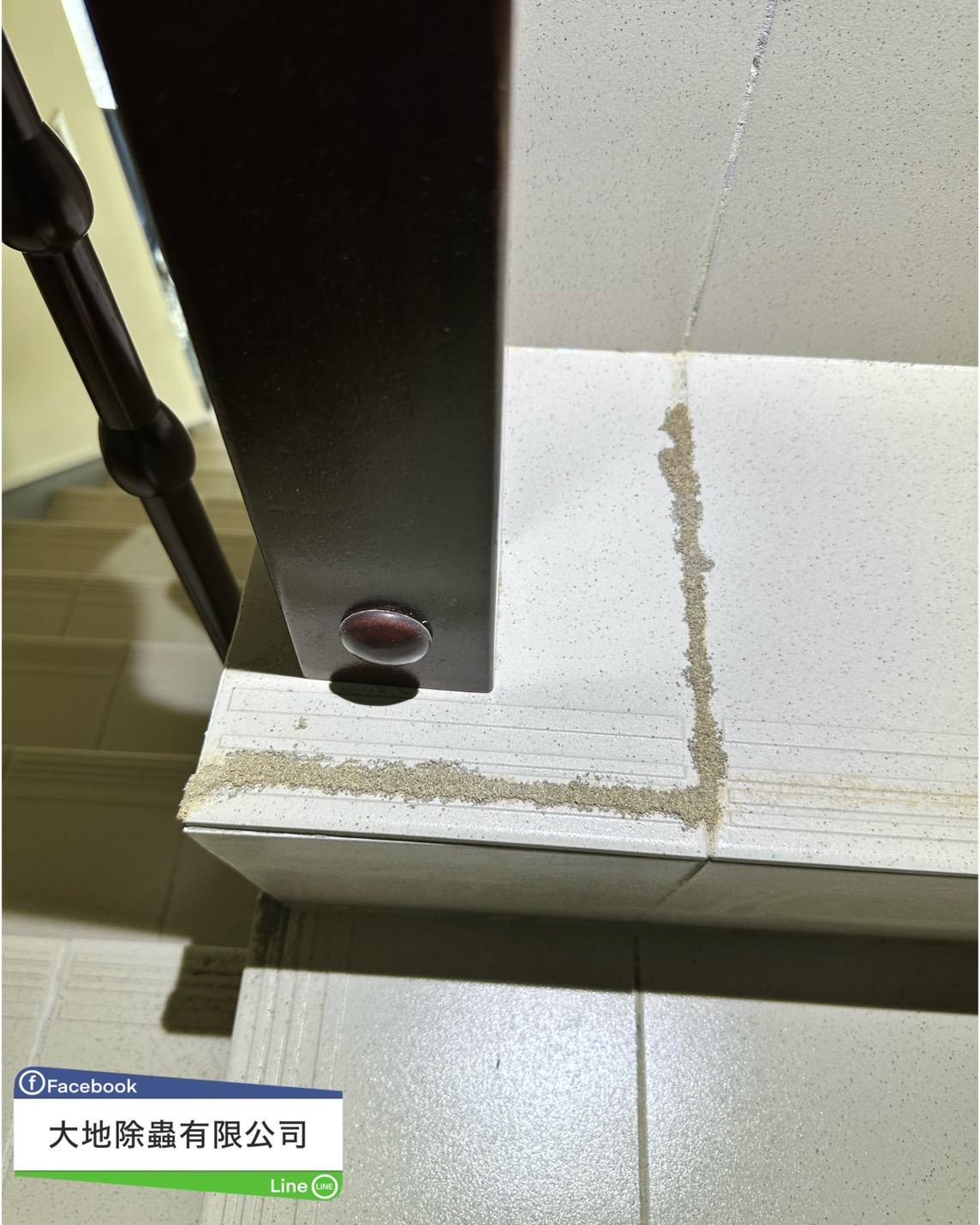 此案例為樓梯磁磚縫跑出白蟻土