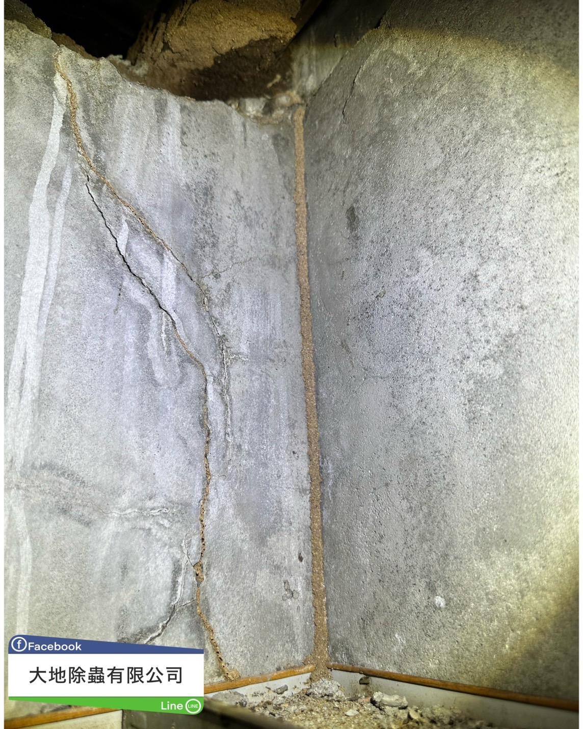 白蟻經由牆壁裂縫蔓延至二樓裝潢後竄出蟻道被發覺
