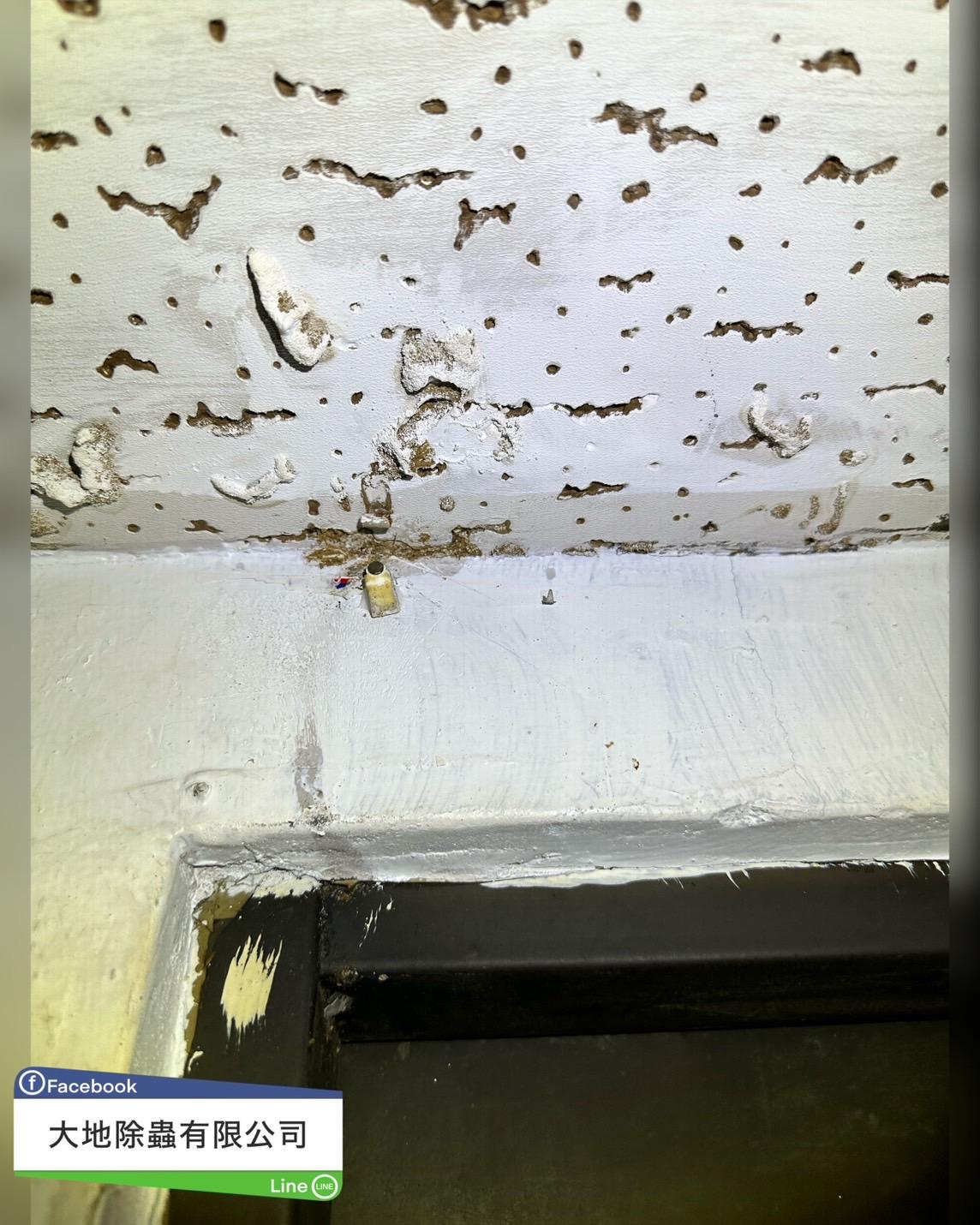 大樓內住戶的門口石膏板遭白蟻啃食