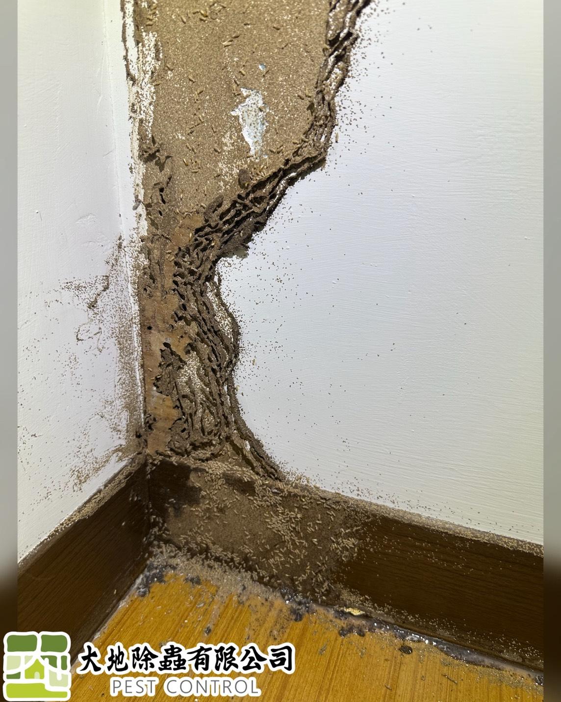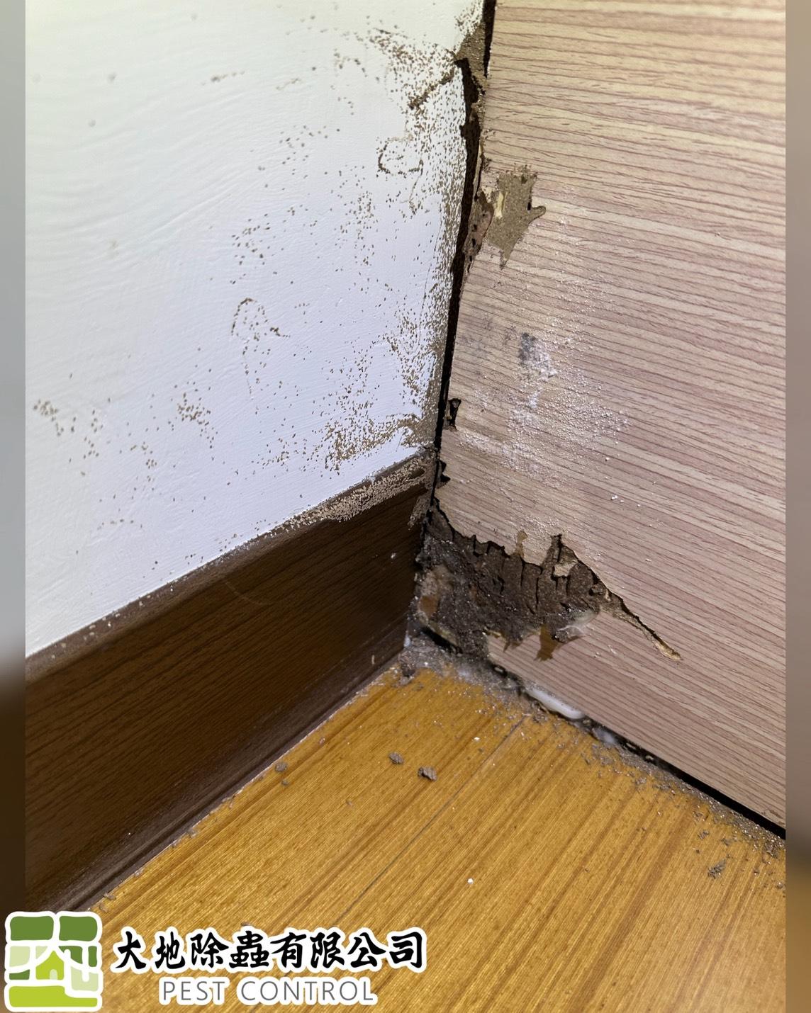 白蟻入侵木板及牆上裝飾壓條